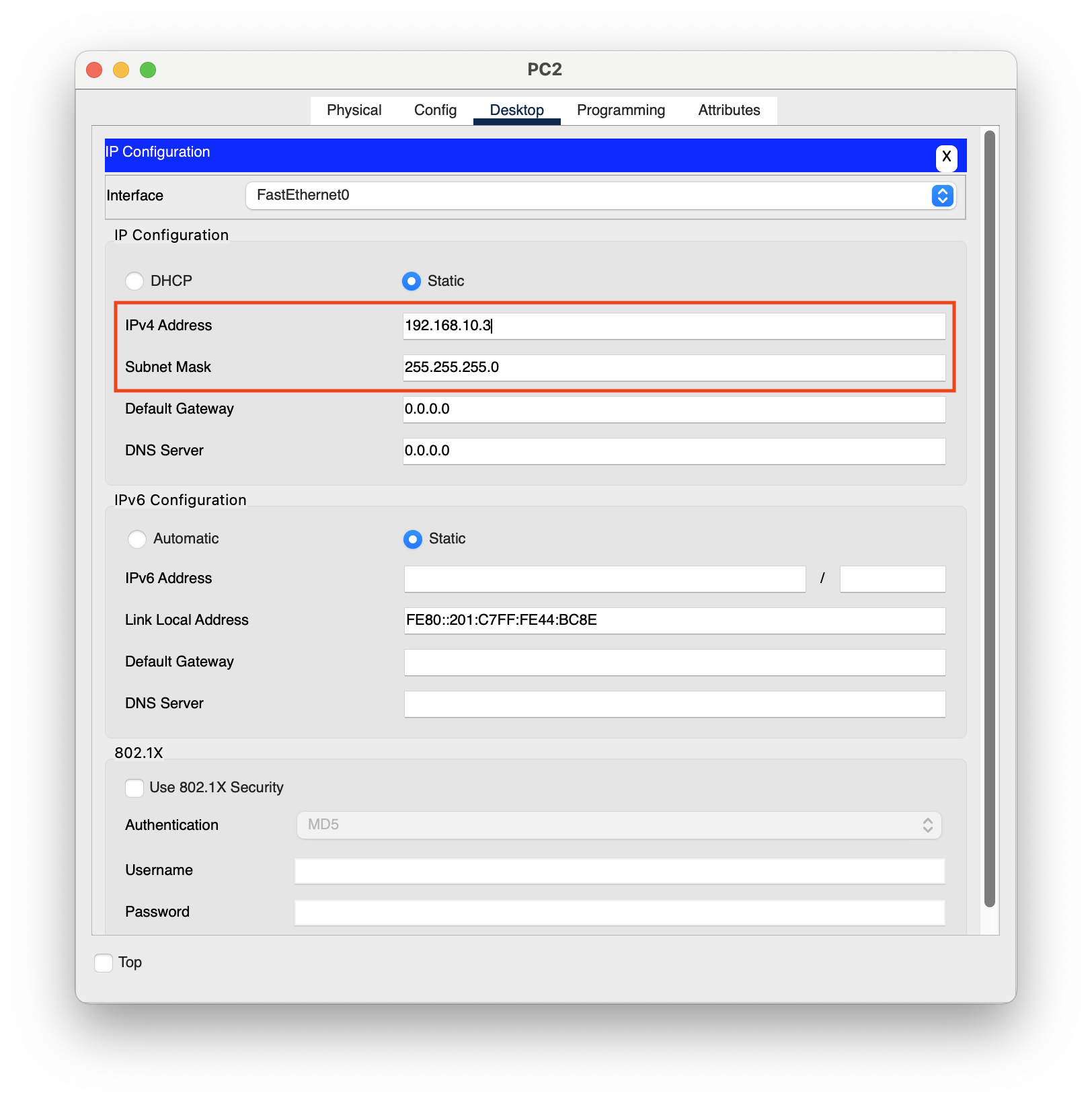 📌 설정 방법: 각 PC → Desktop → IP Configuration → 위 정보 입력